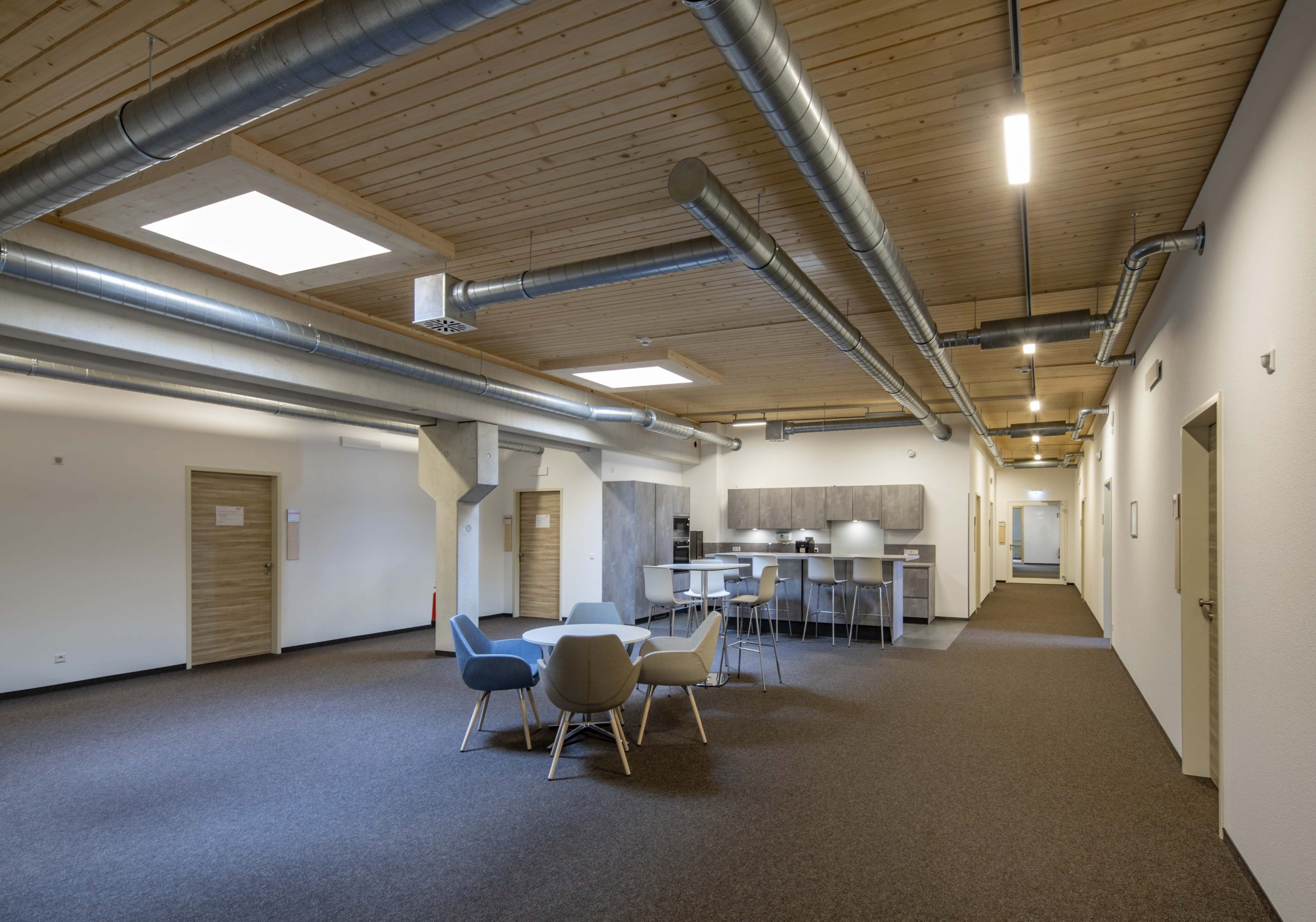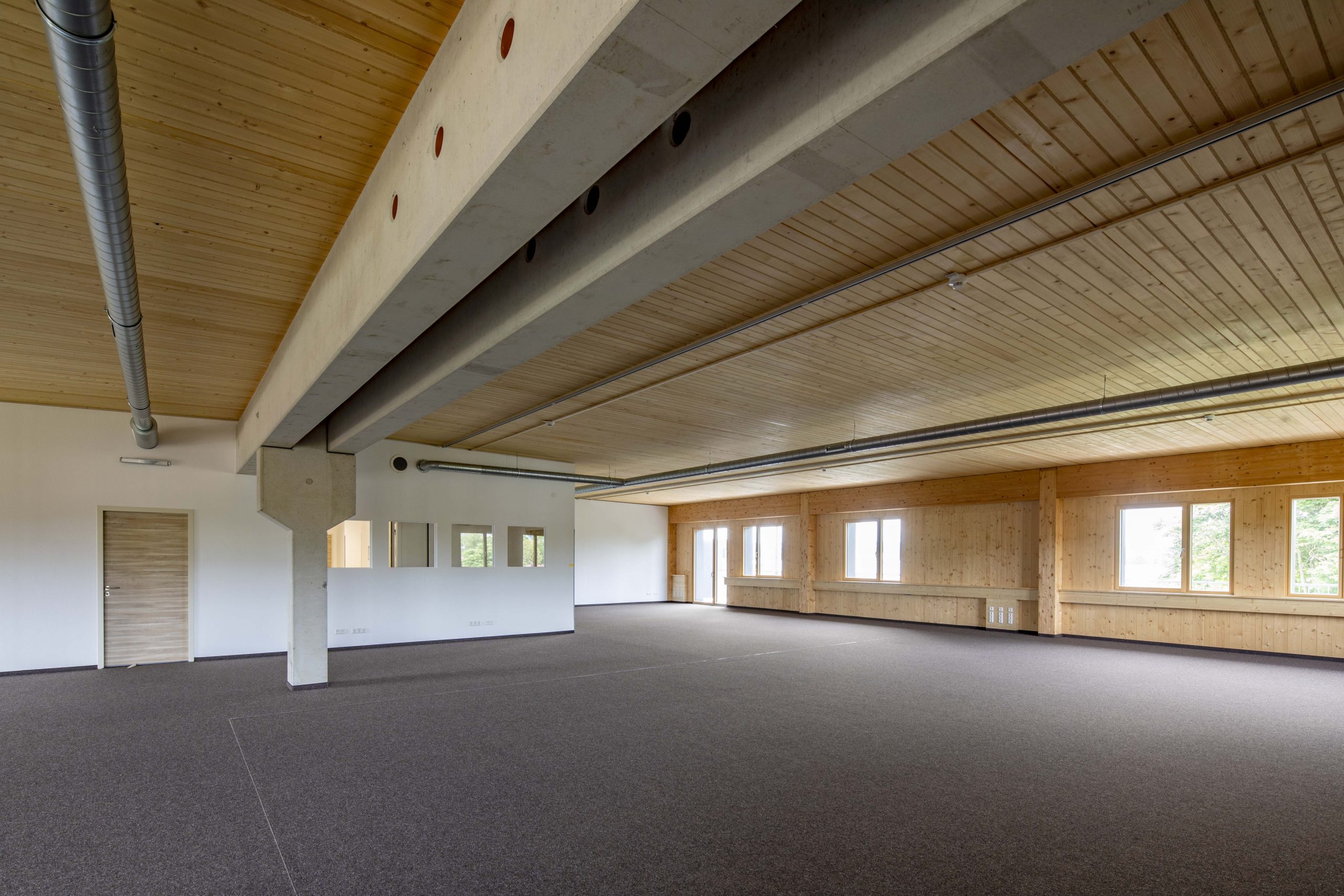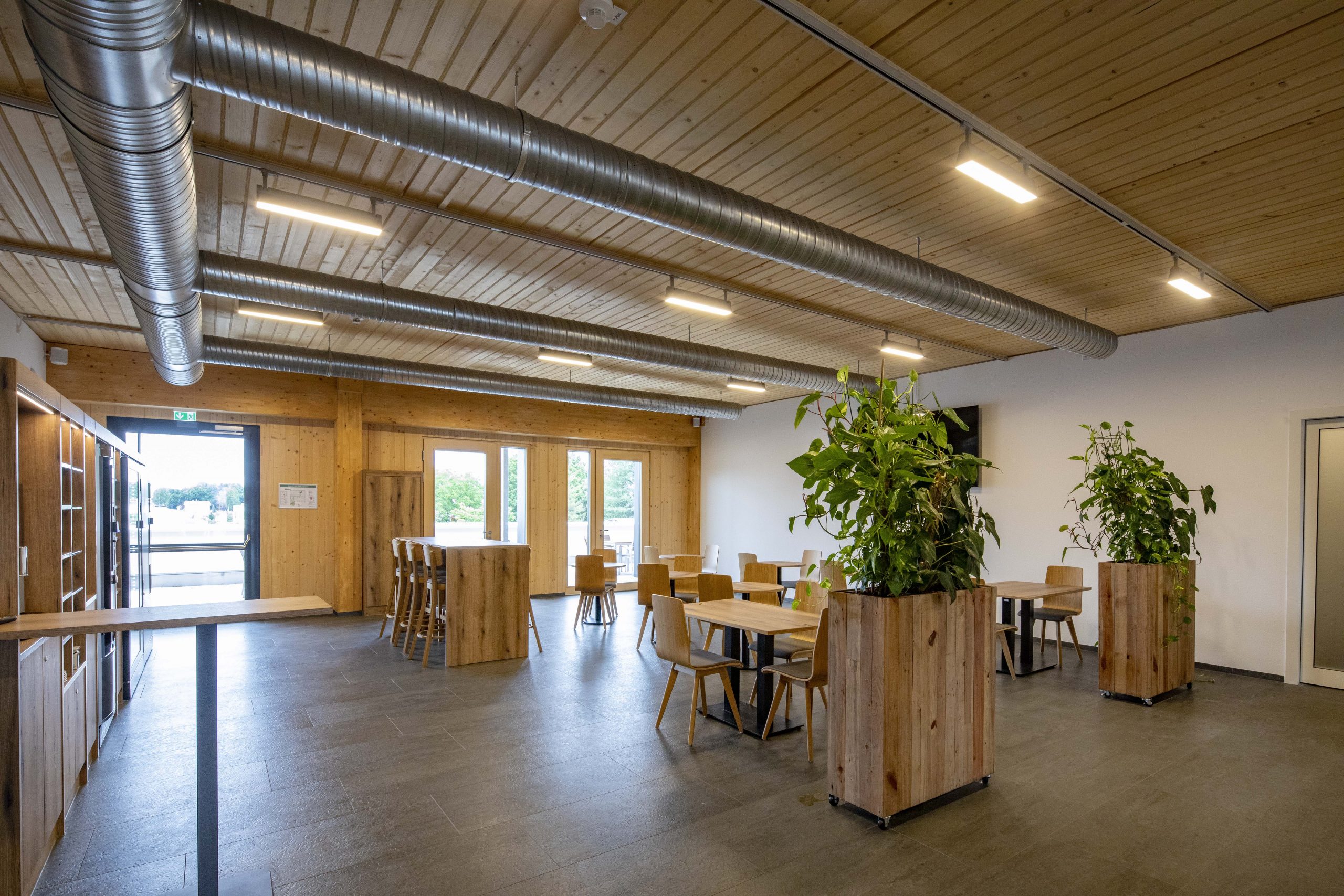 Neben der Spannweite war das vergleichsweise geringe Eigengewicht der Holzbauelemente bei der KIELSTEG-Lösung entscheidend, denn der Neubau wird auf einer bestehenden Gründung errichtet.