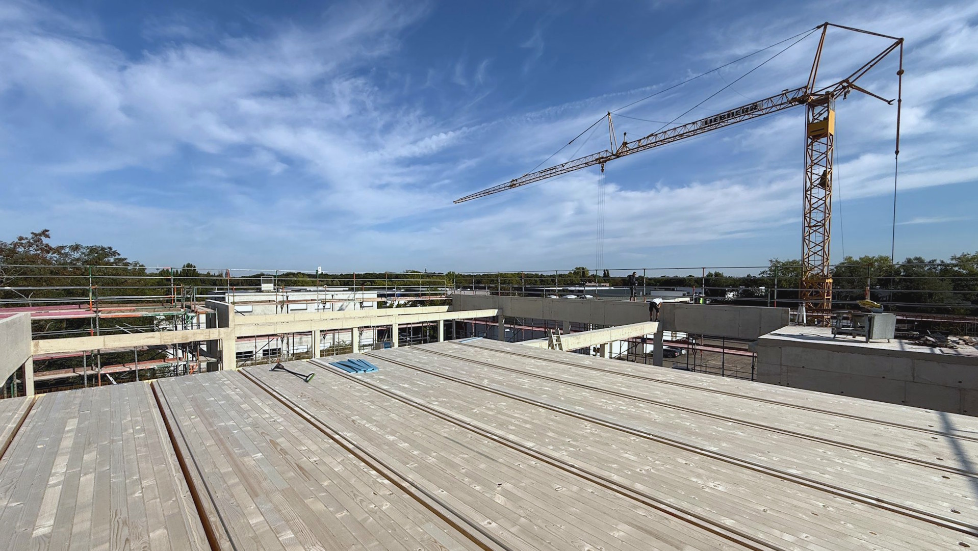 Die Elemente überzeugen zudem mit einer besonders schlanken Bauweise – nur ca. 37 cm hoch sind die montierten 16,5 Meter langen Bauteile. Sie ermöglichten es den Planern, die Gesamtgebäudehöhe im Rahmen der Anforderung zu realisieren.