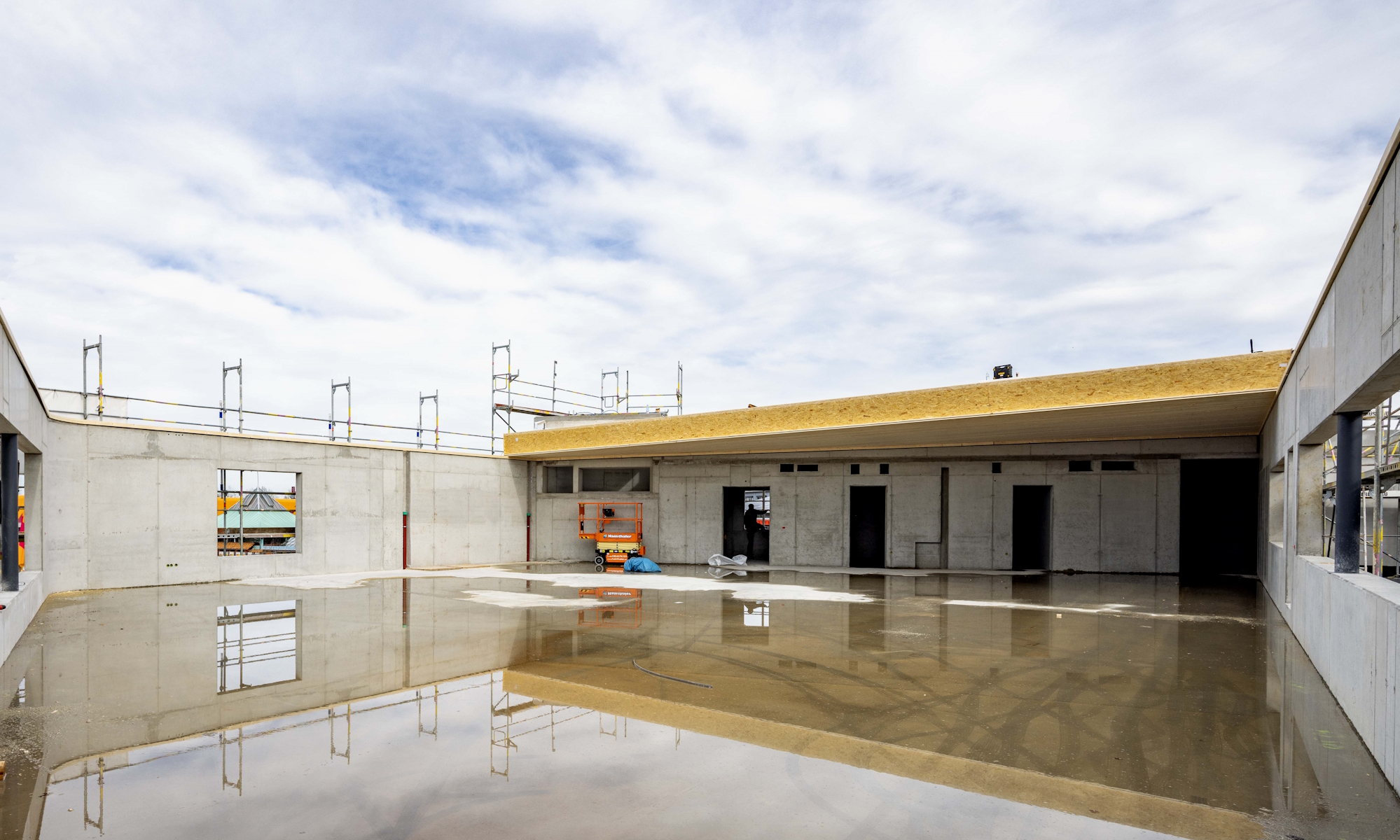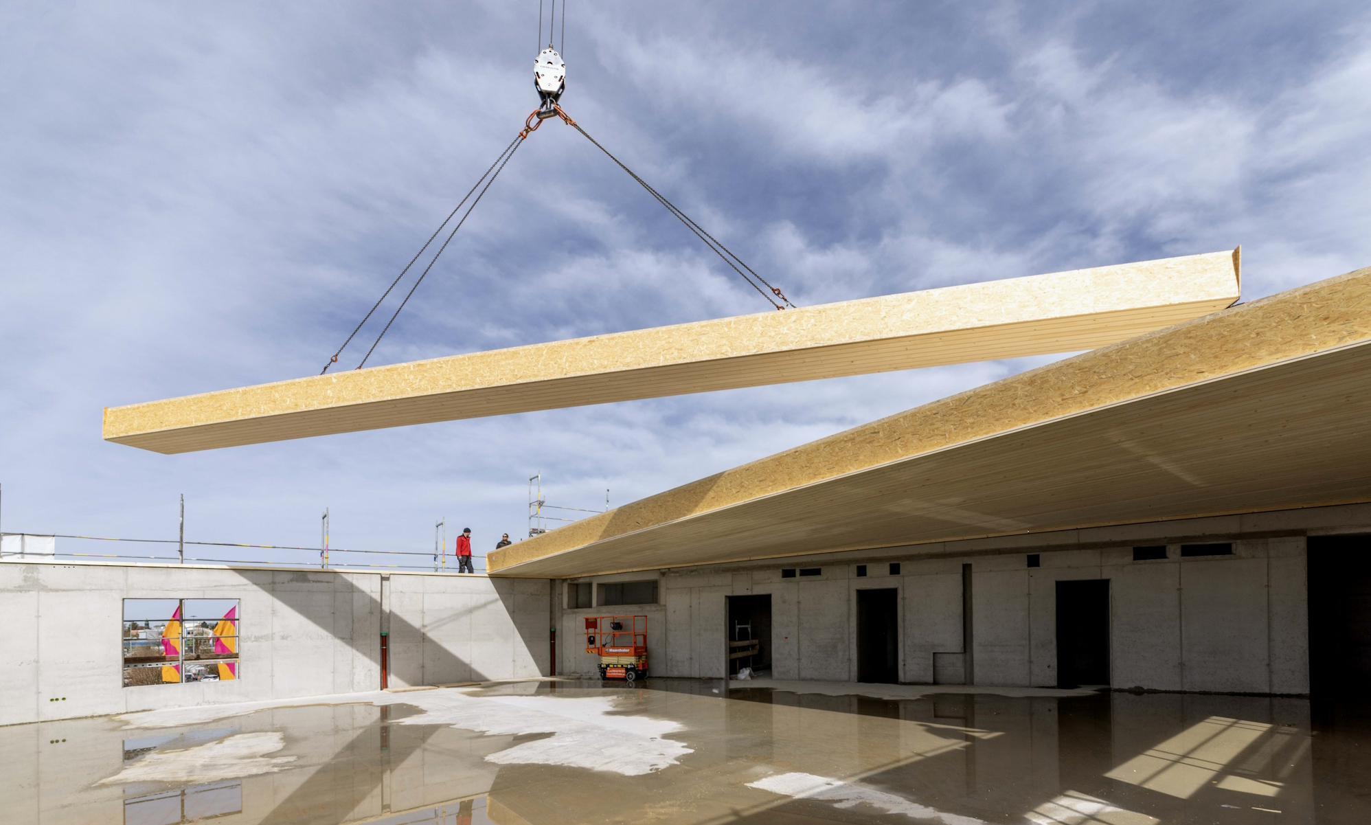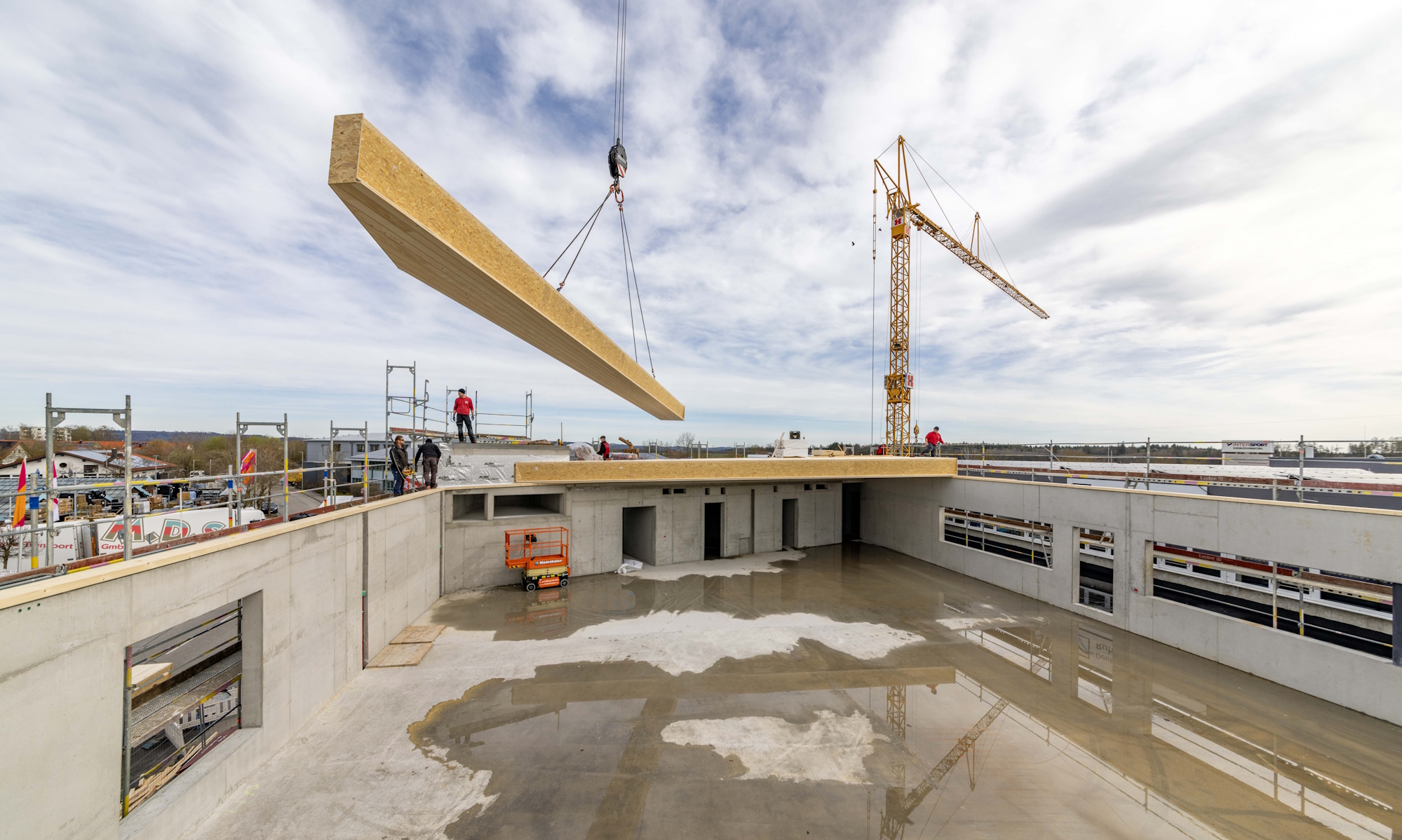 Bei diesem Projekt kommen ca. 19 Meter lange KIELSTEG Dachelemente zum Einsatz. Diese Holzbauelemente überspannen die neuen Flächen stützenfrei: Ein wesentlicher Vorteil für die Verkaufsräume, denn die überbaute Fläche bietet so maximale Flexibilität, was die Einrichtungsgestaltung der betrifft.